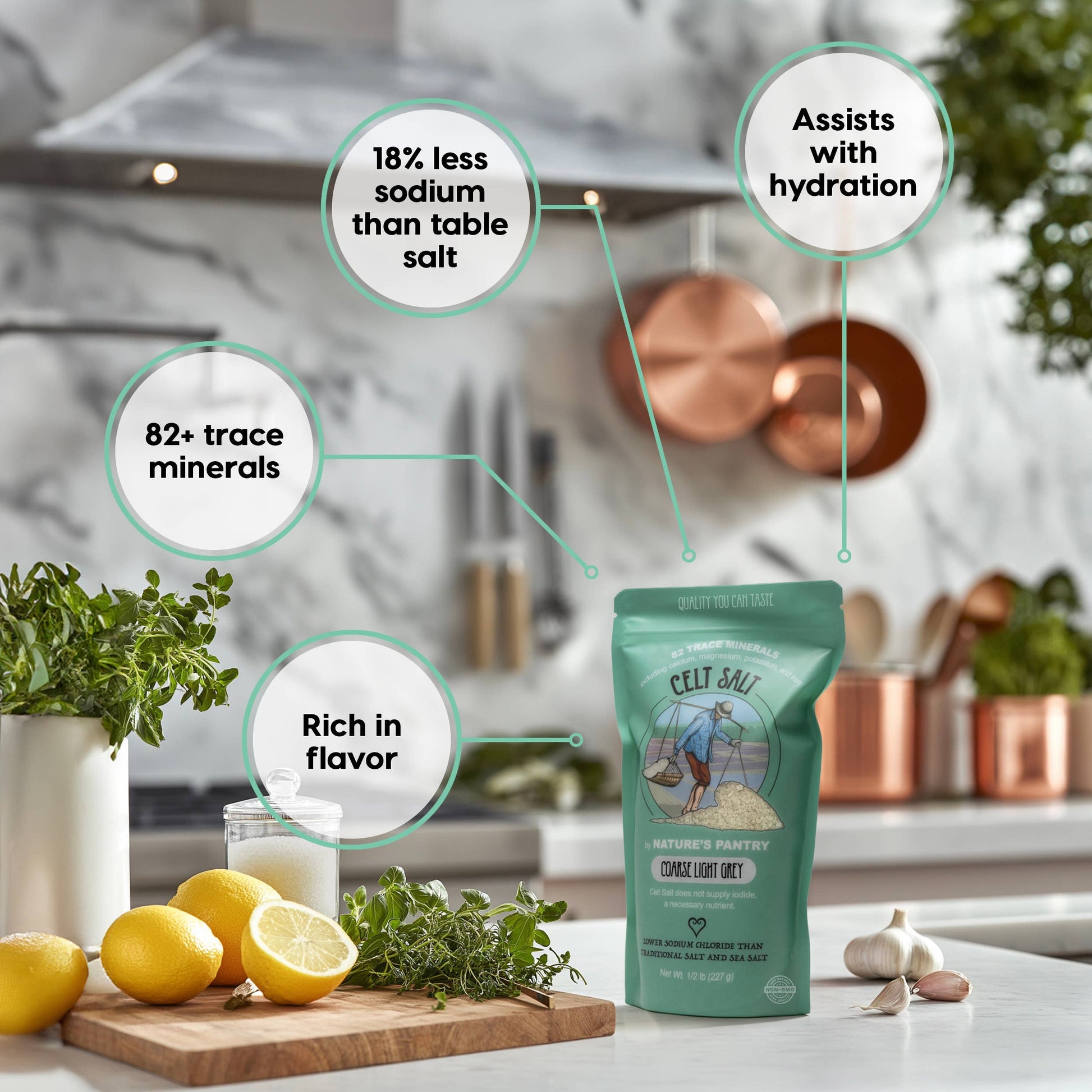 Light Grey Celtic Salt stands as a testament to its natural purity and mineral-rich composition. This coarse, whole crystal salt is a product of meticulous hand harvesting, remaining entirely unrefined and untouched by any processing. It proudly carries non-GMO verification, Kosher certification, and is recognized as a lower sodium and paleo-friendly option.