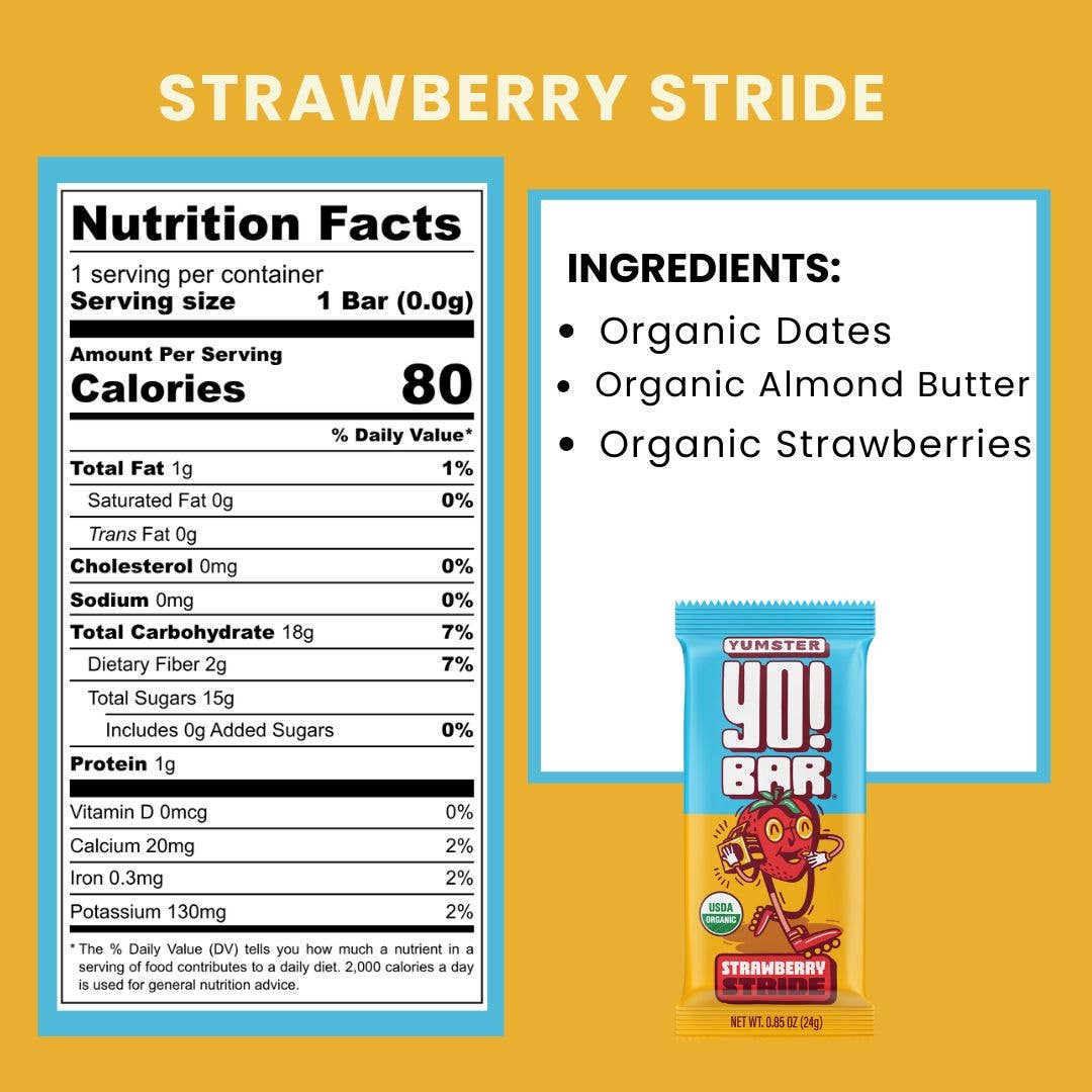 We made these organic bars to taste absolutely delicious and to be super clean and simple. When we say super clean and simple, we mean it - the bars you'll receive contain only 3 ingredients: organic dates organic almond butter organic strawberry * All Organic * Non-Gmo * Plant Based * Vegan * No Added Sugar * Gluten Free * Soy Free * Dairy Free * Grain Free * Real Food!