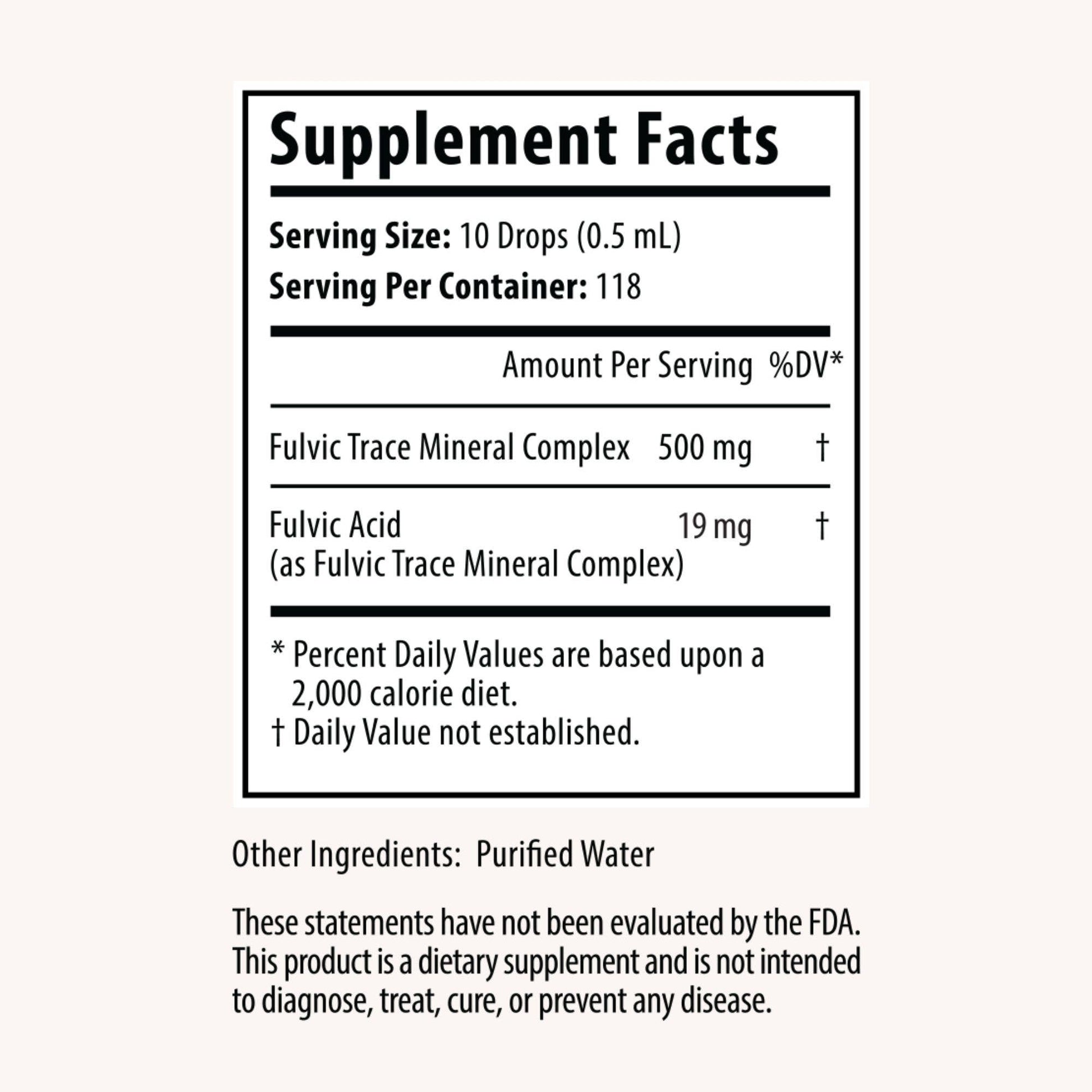 Our trace minerals contain over 70+ minerals including fulvic acid. Fulvic acid is a plant derived organic matter that comes from the earth. Fulvic molecules carry 60 times their weight in nutrients and oxygen. They reduce surface tension of cells in your body allowing for the passage of nutrients into the cells. Fulvic acids like these are what gives fruits and vegetables their nutrient density. They can remineralize water and replace or replenish missing trace minerals in our food. Our trace minerals are derived from shale deposits formed millions of years ago through a process of decomposing historic plant life. These deposits are extracted from a unique shale site located in the United States. Purified water is used to extract the minerals and chemicals are never used in this process. Please note that the droppers on our Trace Minerals will not have a plastic exterior seal like our other drops due to the fact that they are tamper evident caps.