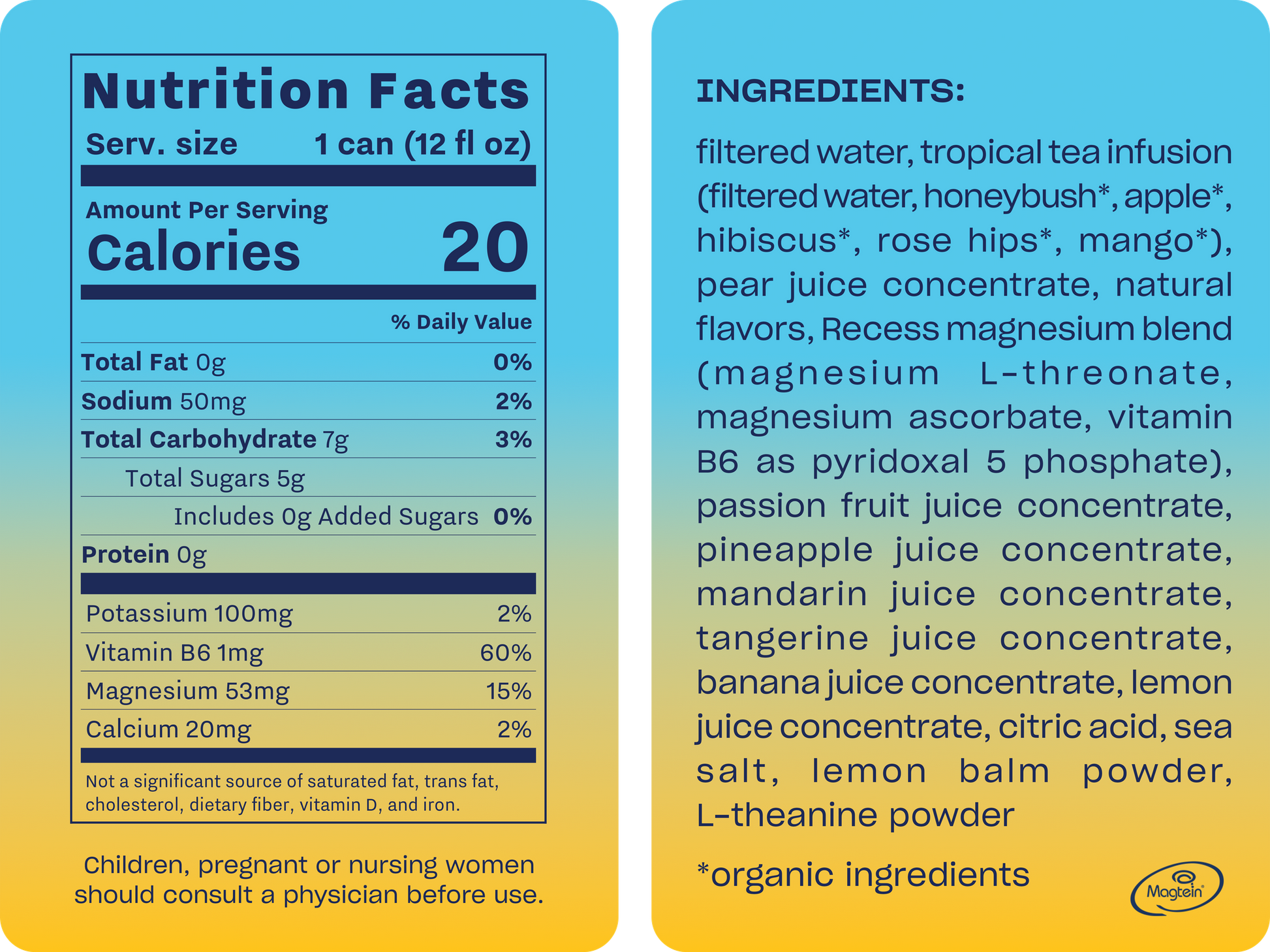 Bliss out on real-fruit notes of pineapple, passion fruit & mango with mood-lifting magnesium & calming adaptogens.